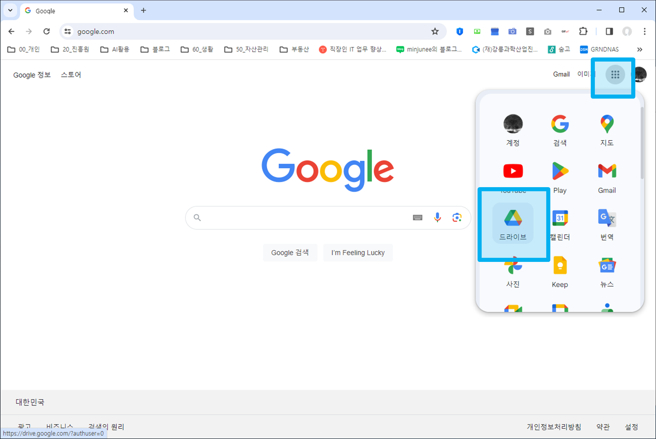 - 구글 메인에서 구글 드라이브에 접속한다.