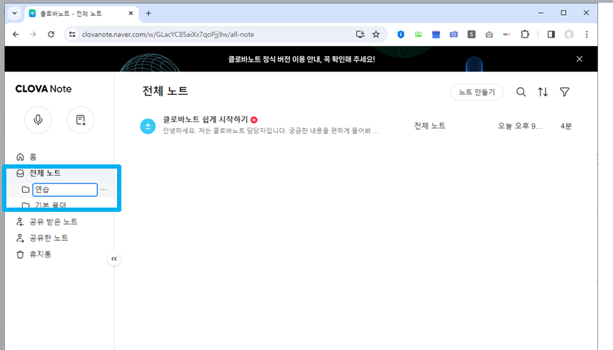 3. 네이버 클로바 노트로 노트 폴더 및 노트 만들기