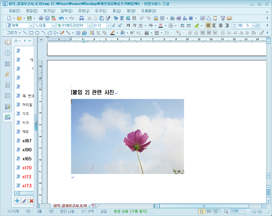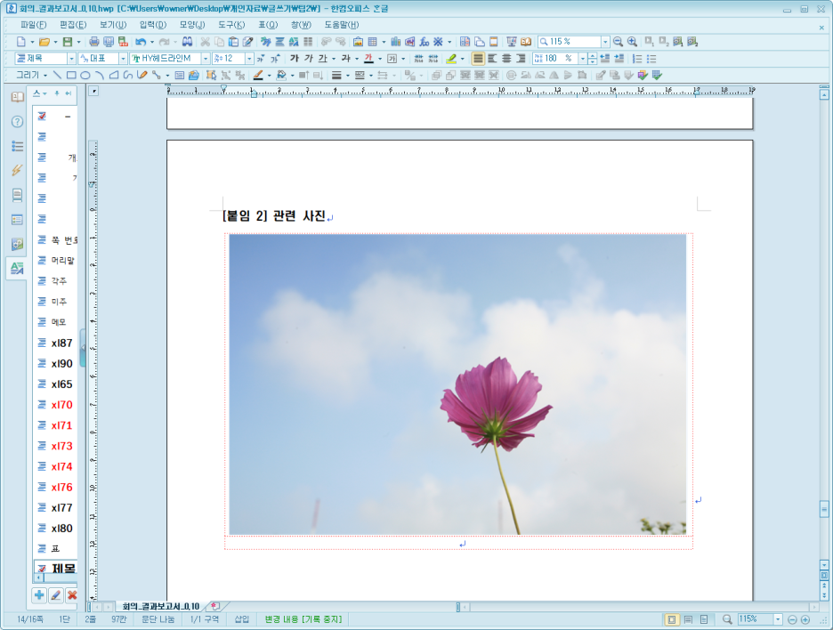 - 해당 부분은 나중에 삽입된 이미지를 키우면 깨지는 경우가 발생합니다. 한글문서 작업의 경우는 400px 정도가 화면 가로에 맞습니다만