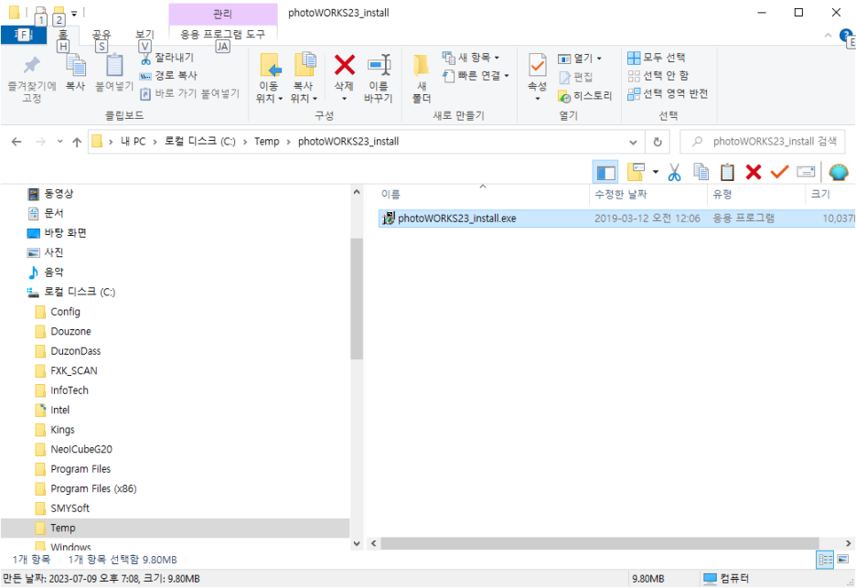 - 압축을 해제하면 포토웍스 2.3. 인스톨 파일이 생깁니다. 해당 파일을 클릭하여 설치합니다.