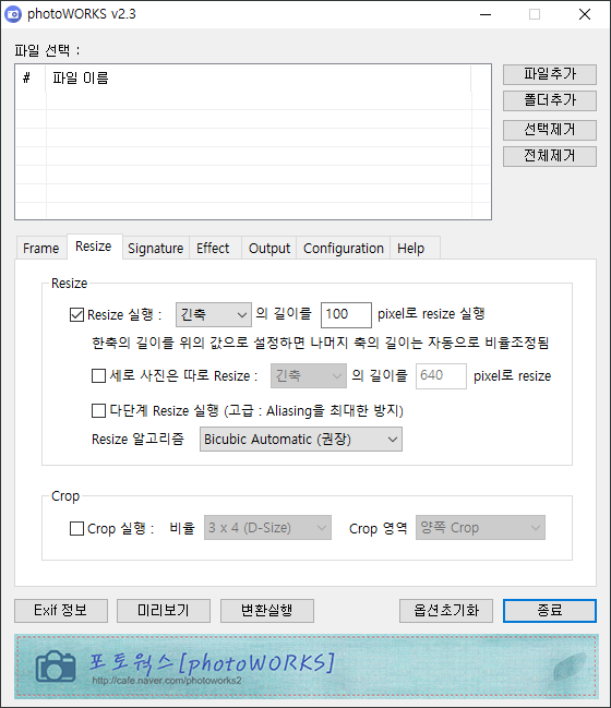 1. 파일 선택 부분은 사진크기를 줄이고자 하는 파일을 선택하는 화면