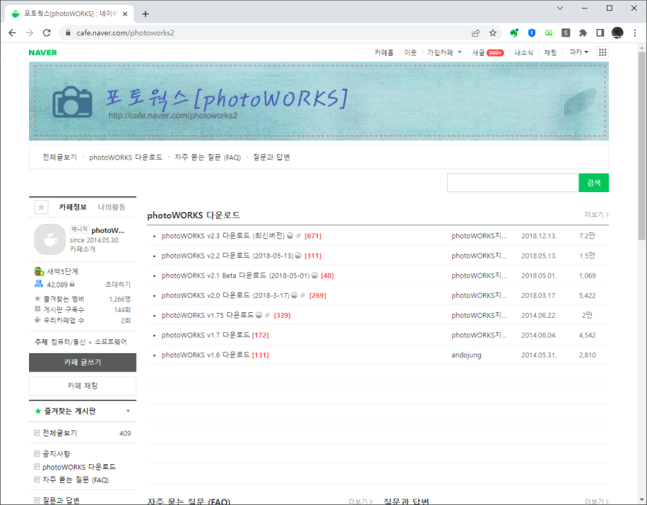 - 포토웍스 사이트에 접속합니다. (https://cafe.naver.com/photoworks2)