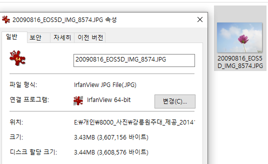 - 첨부하려는 이미지 폴더로 이동한다. 이미지 사이즈를 확인합니다. 해당 파일은 3.43MB 이네요. 10장만 첨부해도 34MB가 됩니다.