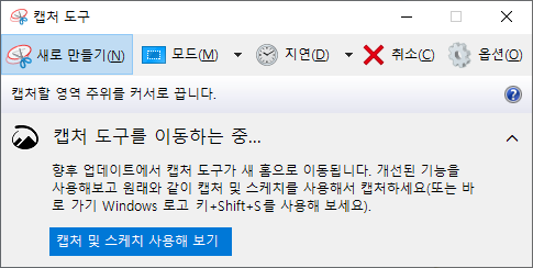 - [윈도우즈 보조 프로그램] - [캡처 도구]를 실행하고 '새로 만들기'를 클릭합니다.