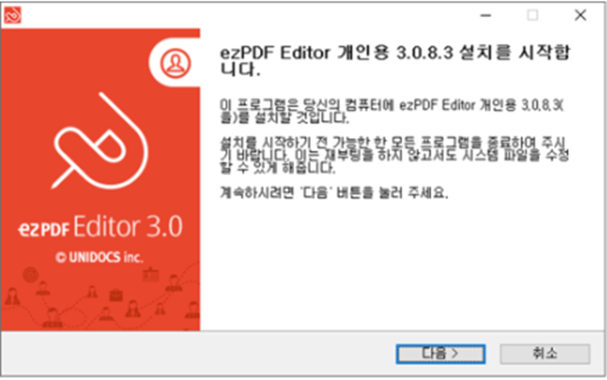 - 다운로드한 "ezPDFEditor_Personal_Setup_3.0.8.3.exe" 파일을 더블 클릭합니다.