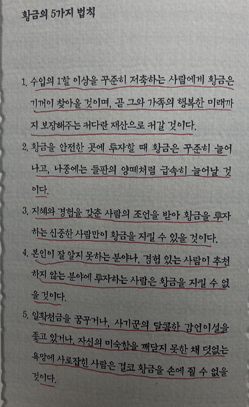 - 어떻게 부를 이룰지는 아직 정해지지 않았지만 어떤 마음 가짐으로 임해야 하는지는 충분히 알게 해 주어서 참 고마운 책이다.