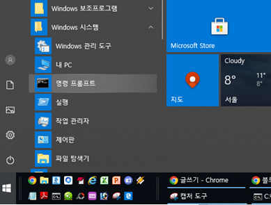 또는 시작 메뉴에서 [Windows 시스템] - [명령프롬프트]가 있습니다.