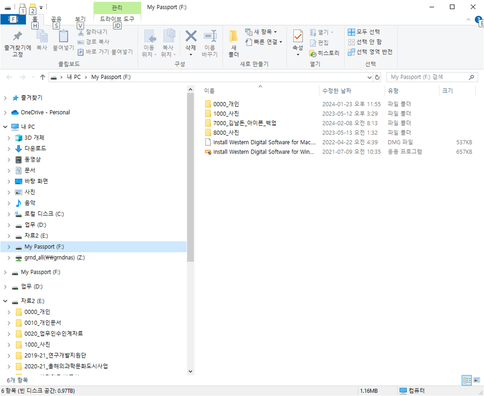 - 이제 외장하드 데이터 확인 후 로컬 디스크에 복사해야겠습니다.