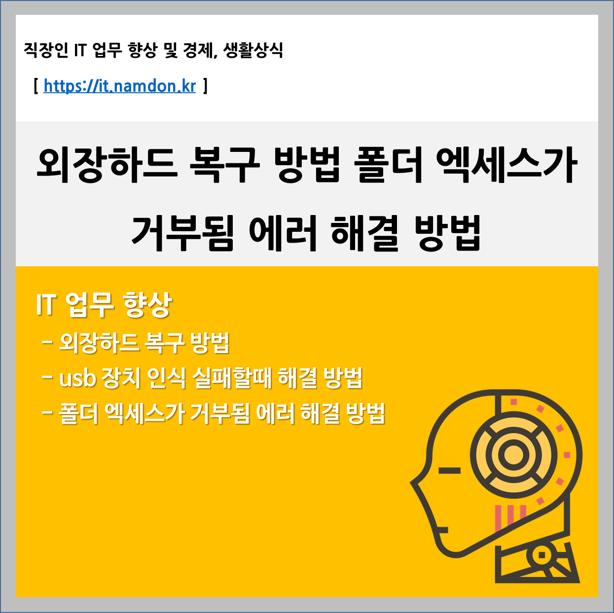 0. 외장하드 복구방법과 usb 장치 인식 실패 시 폴더 액세스가 거부됨 해결 방법