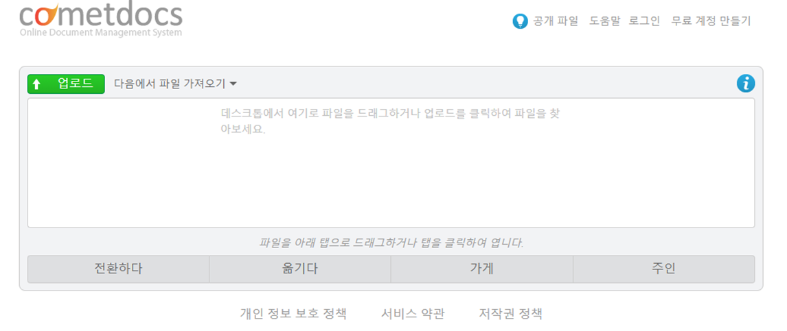 - 등록되지 않은 사용자는 IP 주소다 매주 3회 전환만 가능하면 IP 당 매일 100MB 상당의 파일 전송이 가능합니다.