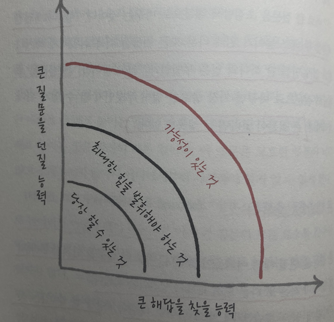 - 큰 질문은 그코 구체적인 답변을 내놓으라고 당신을 압박하고, 자극하고, 결려한다. 또한 측정 가능하게 설계되므로 최종 결과물이 크게 바뀌지도 않는다.
