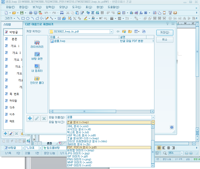 hwp 파일 pdf 변환 개요