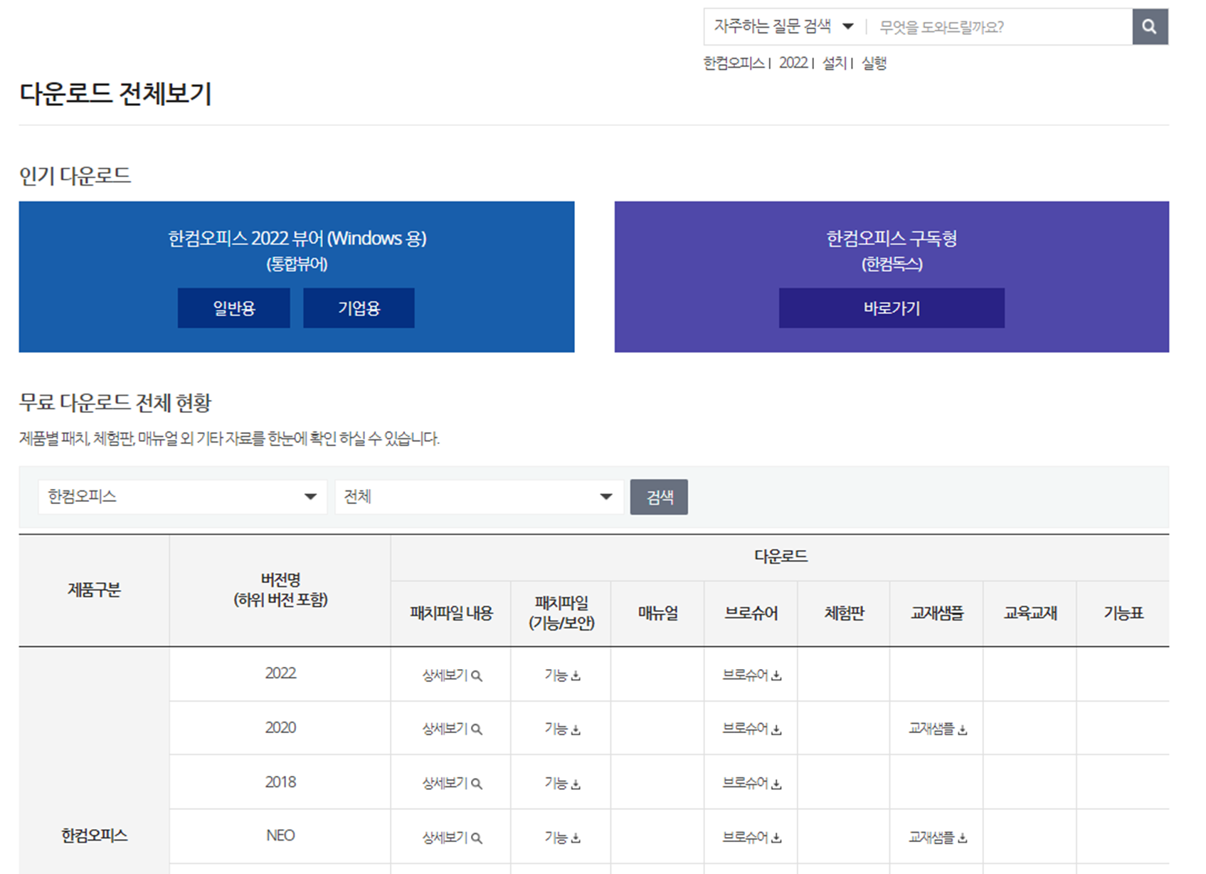 - 상단 좌측에 있는 [한컴오피스 2022 뷰어 (Windows 용)(통합뷰어)] 다운로드합니다.