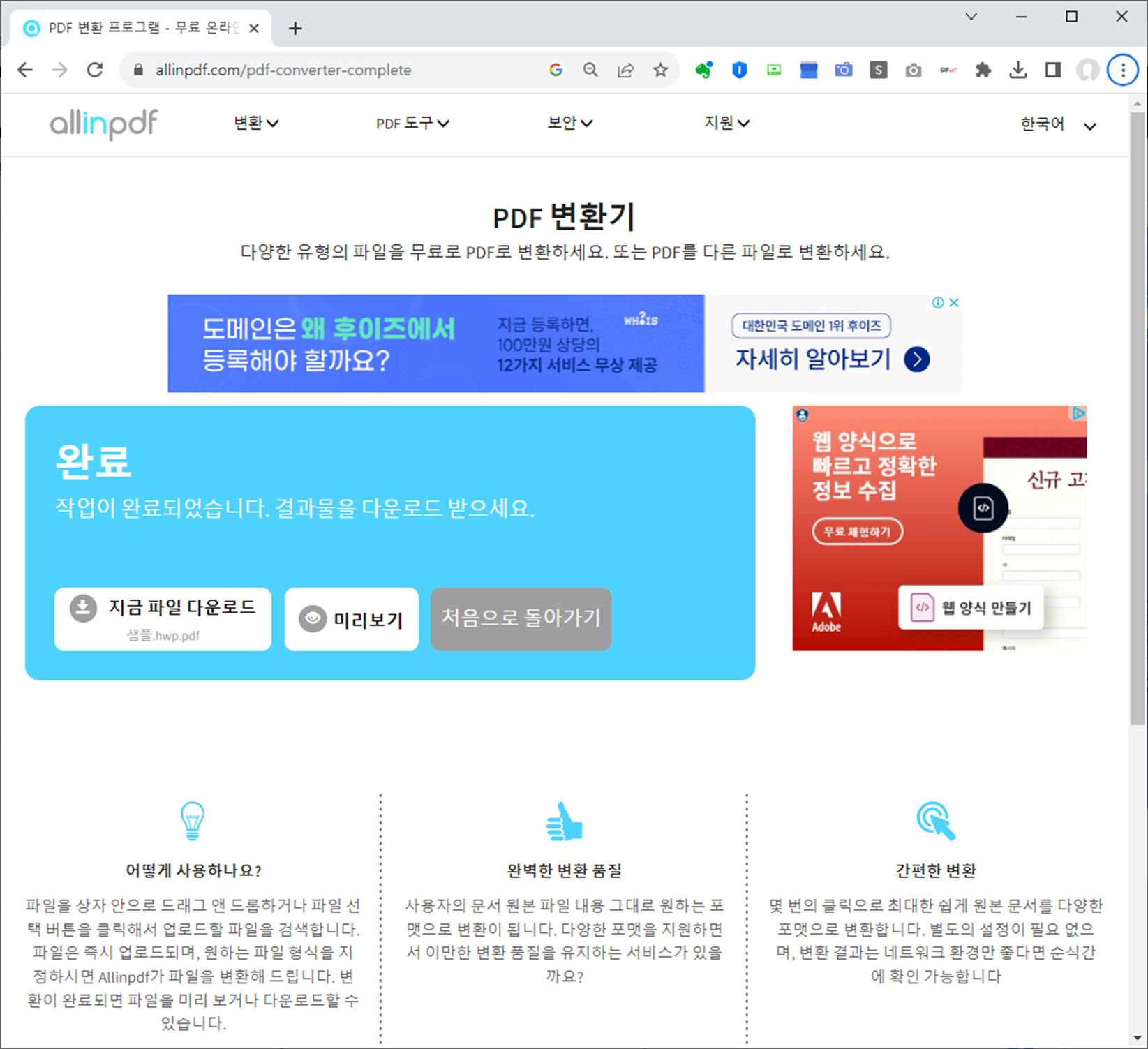 변환 HWP PDF 온라인무료